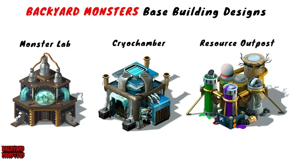 The Backyard Monsters world balanced chaos with structure with mad-science energy plants, haphazard laboratories, and resource hubs that looked cobbled together from junkyard tech. Each design was meant to feel like something a monster would build, while still maintaining clear gameplay logic and upgrade readability.