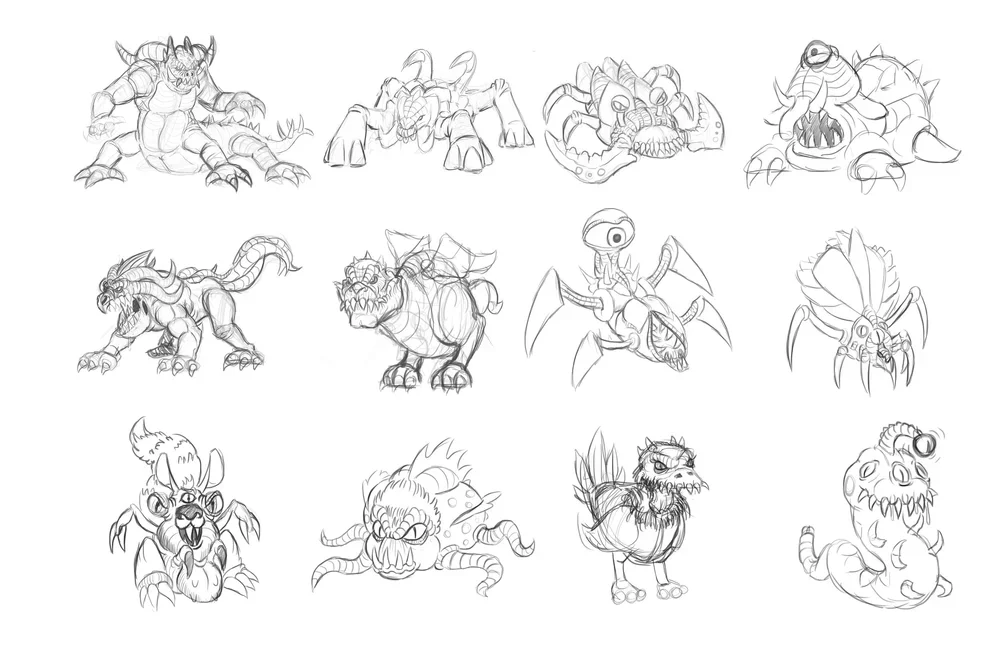 Redesigning the original monster lineup while keeping the heart of the originals. The goal was to be HARDCORE but LOVEABLE.