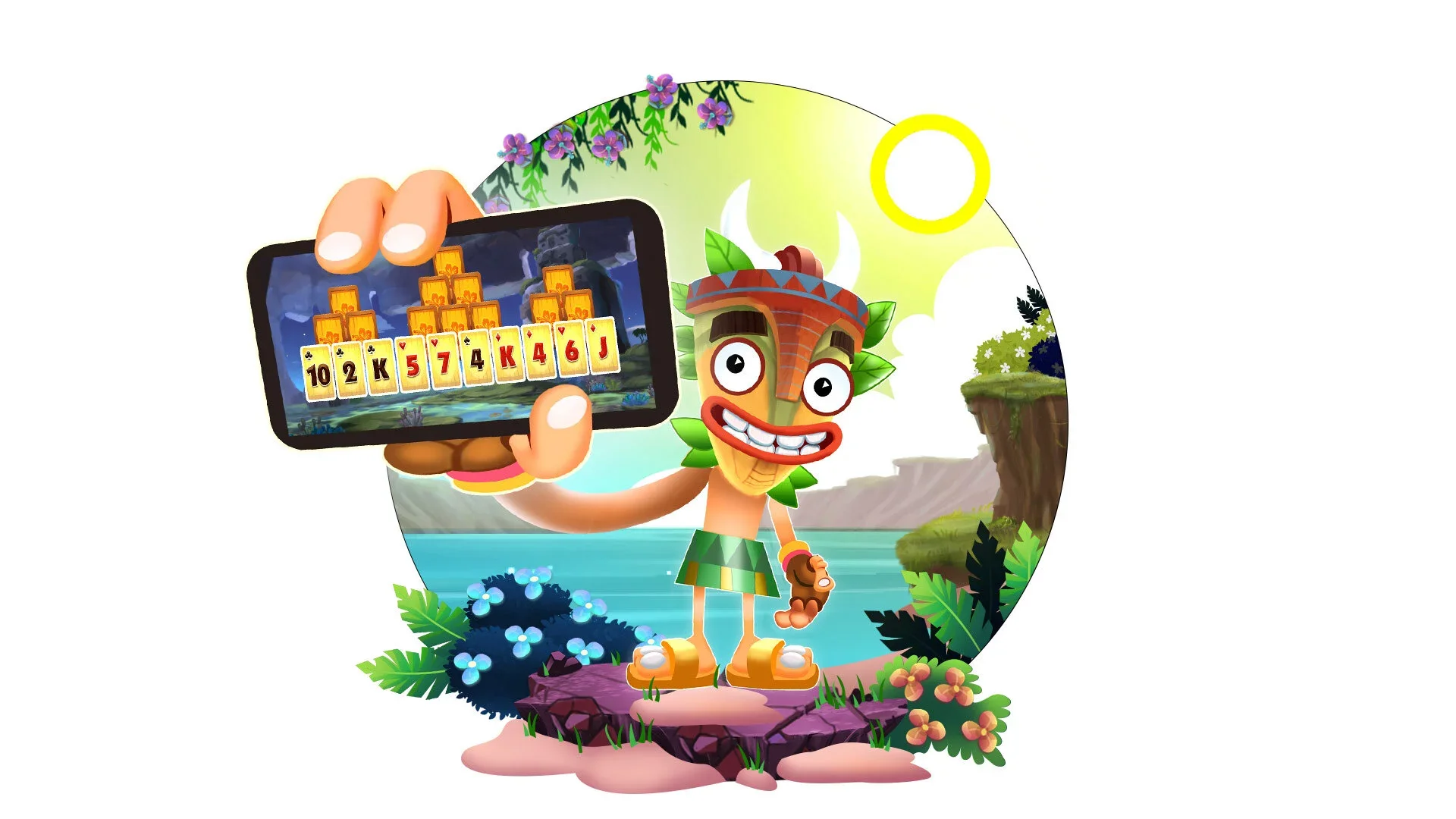 Originally featured on the GSN Games homepage (2019–2020) as the hero image representing all apps. This illustration embodied the energy and adventure of the Solitaire TriPeaks world, positioning Tiki as a brand icon across the company’s ecosystem.