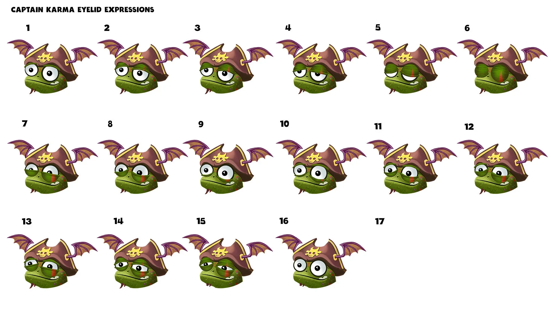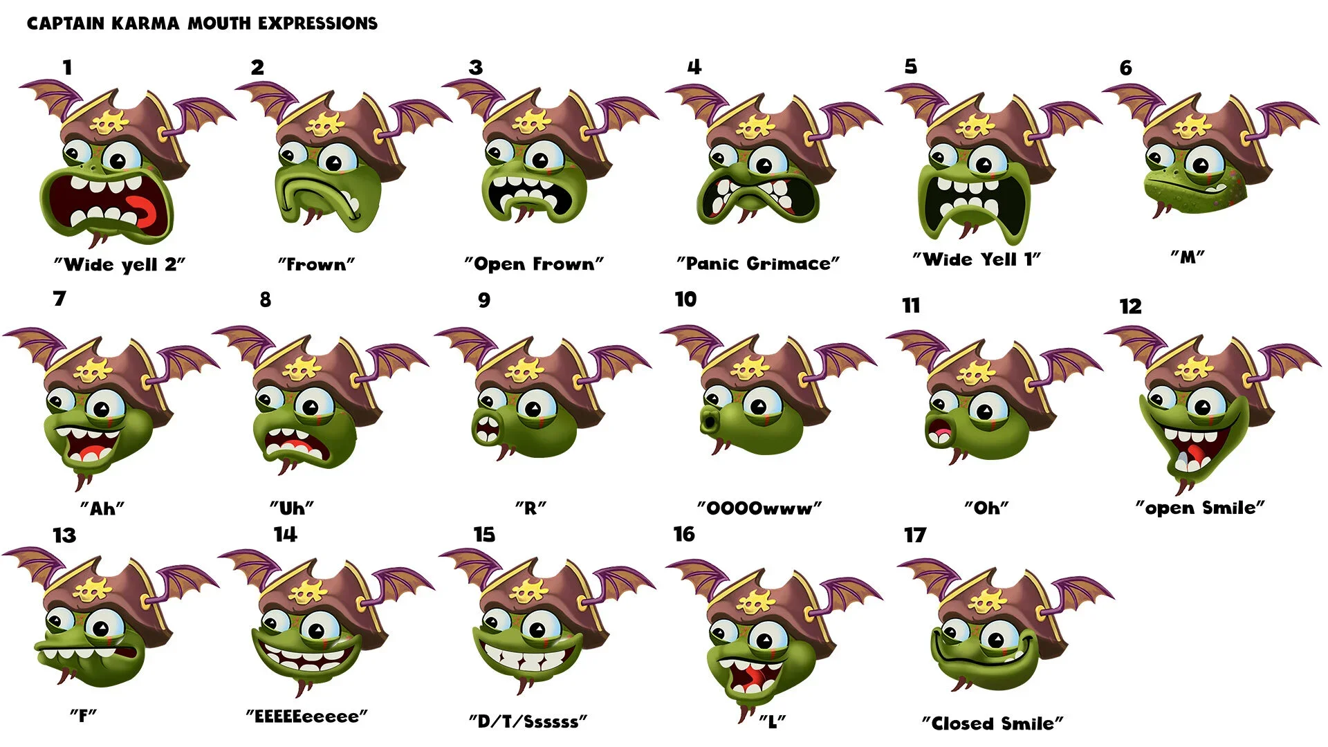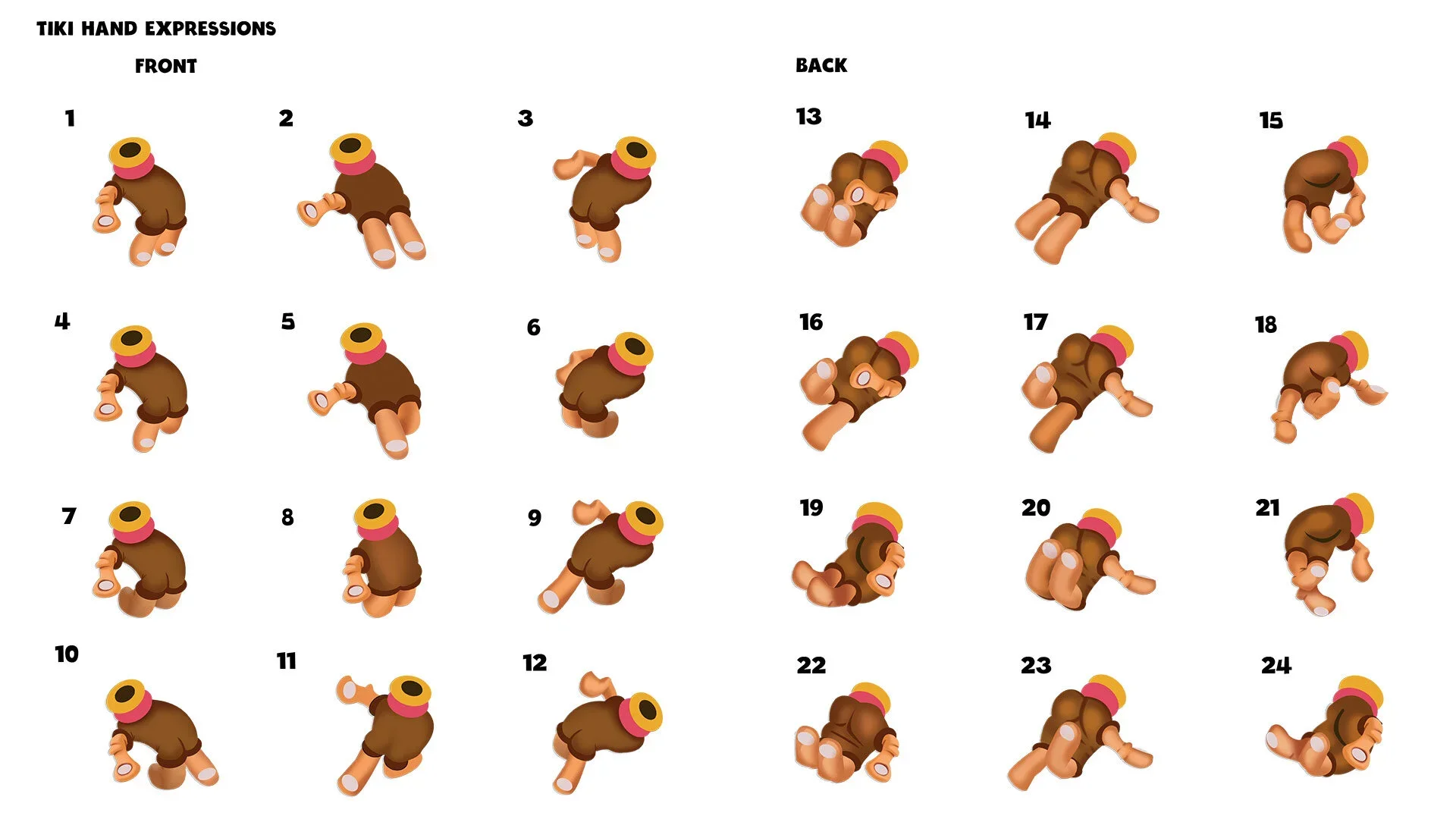 These rigs detailed full mouth, eye, and hand symbol libraries for the Mini Tikis. defining a unified animation language that could scale across hundreds of variations. Each puppet used rotation-based parenting and pre-composed structures for 3D wrist motion, ensuring technical precision without sacrificing personality.